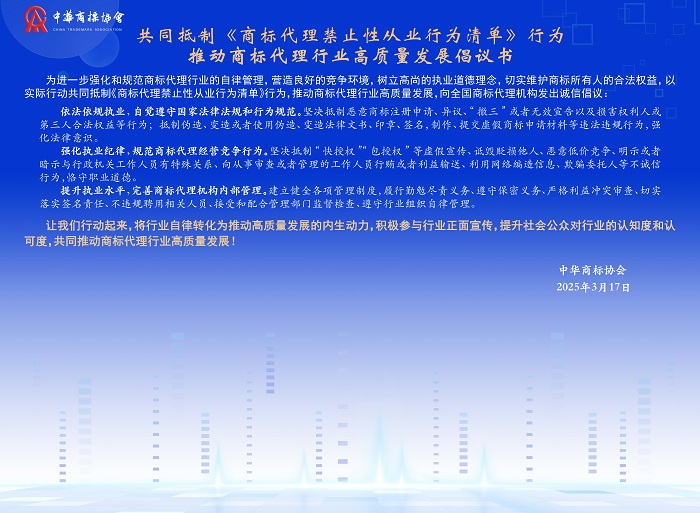 共同抵制《商标代理禁止性从业行为清单》行为推动商标代理行业高质量发展