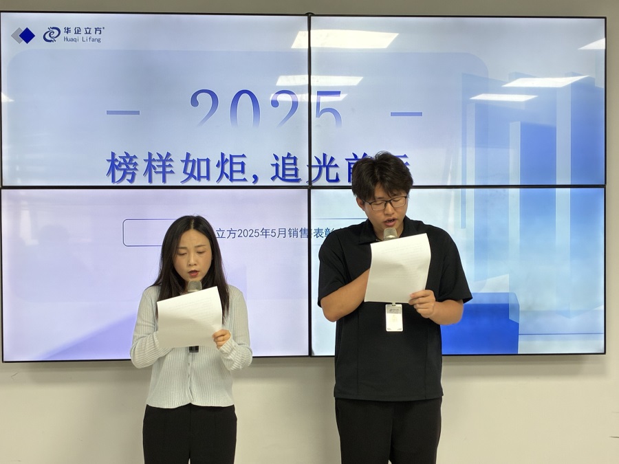 在这个销售的舞台上,每个人都可以是主角,用你的热情,书写属于你的精彩篇章!一分耕耘、一份收获,带着责任和梦想,我们在这里收获成功。经过一个月的拼搏和努力,每一个兄弟都为公司付出了自己的一份力量。今天又到了揭晓结果的时刻。《榜样如炬,追光前行》——江阴华企立方2025年5月销售表彰大会,雨2025年6月9日召开。本次活动由商务二部李鹏鹏和财务部贡梦骄主持。
