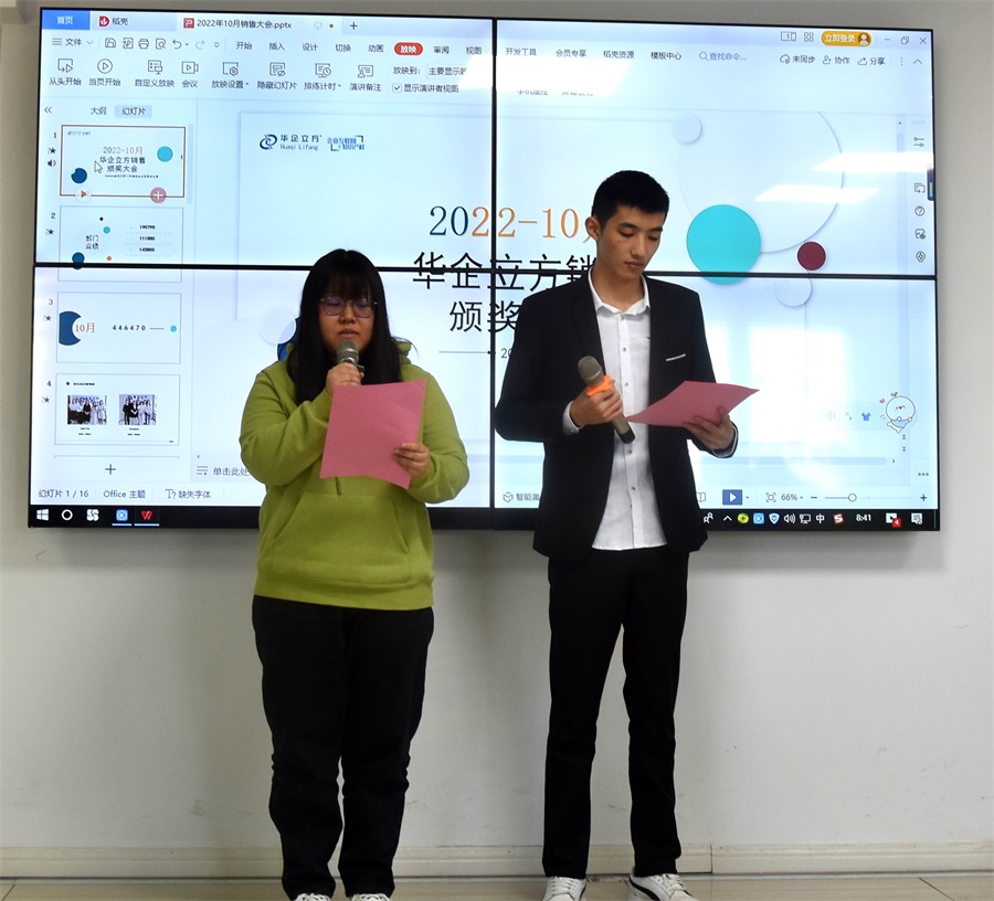 伴着新一轮的朝阳,我们迎来充满生机的一天!伴着清新拂面的晨风,我们昂首阔步迎接新一轮的挑战!2022年10月华企立方江阴公司销售大会在11月7号上午举行。担任本次大会的主持人是来自江阴商务一部的李承志和技术二部的向依婧。...